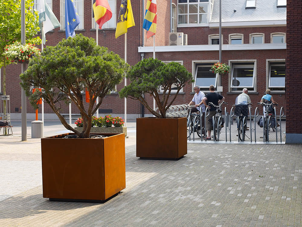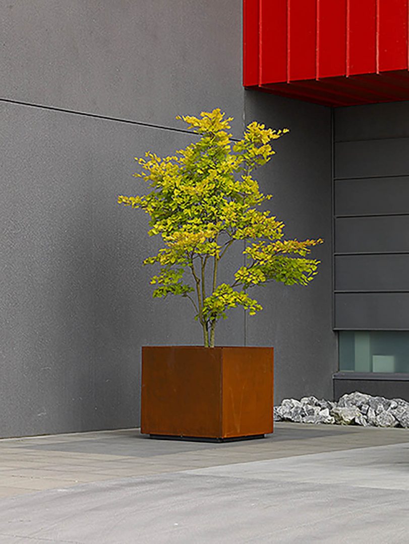 De stalen TreeCube is een stijlvolle, onderhoudsarme boombak voor permanente en tijdelijke projecten, al dan niet in een kleurtje. De perfecte oplossing wanneer bomen of struiken niet in volle grond geplant kunnen worden en bovendien verplaatsbaar.